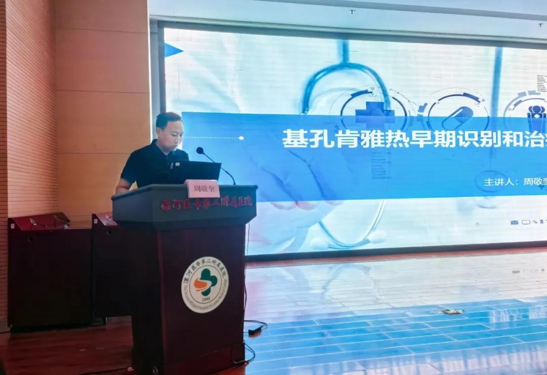 本次培訓(xùn)邀請了呼吸內(nèi)科周敬奎主任進行授課,內(nèi)容涵蓋基孔肯雅熱和登革熱的流行病學(xué)特征、臨床表現(xiàn)、診斷標準、治療原則以及防控措施等方面。周主任結(jié)合實際案例,對兩種疾病的鑒別診斷進行了詳細講解。