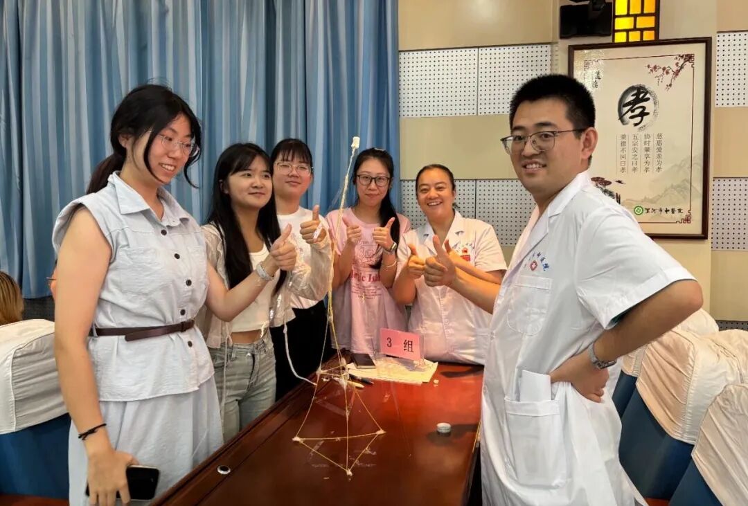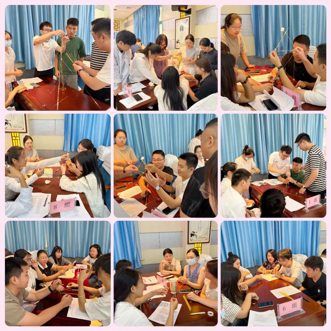“團(tuán)結(jié)協(xié)作”互動(dòng)游戲:以14根意大利面、一個(gè)棉花糖、一卷膠帶為道具,將道具組合到一起做成一個(gè)模型固定到桌子上,哪個(gè)團(tuán)隊(duì)的模型最高最結(jié)實(shí),哪個(gè)團(tuán)隊(duì)獲勝。游戲過程中,大家相互配合、彼此鼓勁,從生疏到默契,從緊張到從容,在歡聲笑語(yǔ)中打破了陌生壁壘。楊軼不時(shí)為大家加油,告誡大家不能靠個(gè)人的英雄主義和單打獨(dú)斗,通力合作才能出結(jié)果,團(tuán)結(jié)才能共贏?,F(xiàn)場(chǎng)“醫(yī)院大家庭”的溫馨氛圍愈發(fā)濃厚。直至中午12點(diǎn)多,大家還意猶未盡。